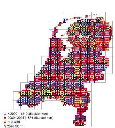 CC BY-NC-SA 3.0 NLVerspreidingNederlandVrij algemeen in Zuid-Limburg, in het rivierengebied en in de Hollandse en Zeeuwse duinen en in het oosten van het land. Elders vrij zeldzaam.