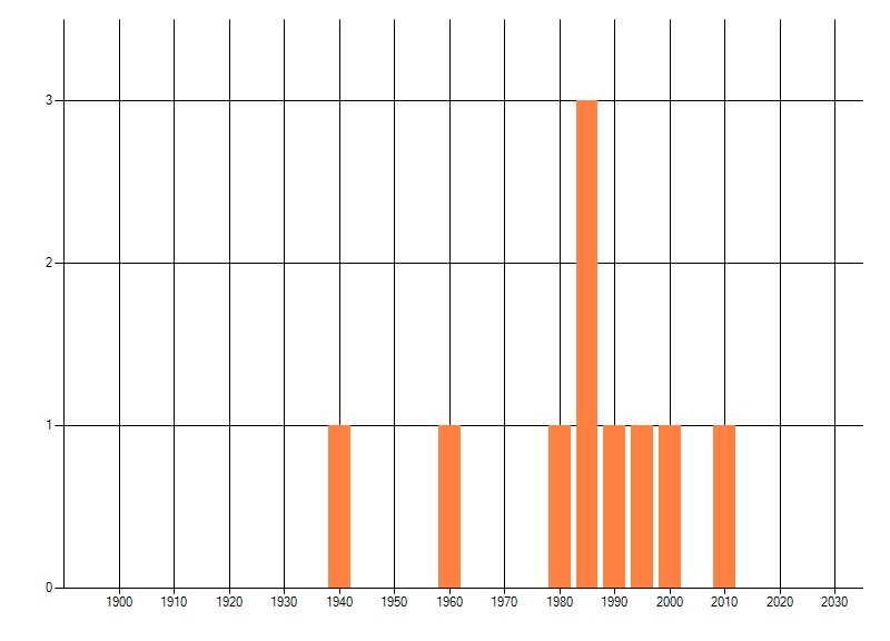 Het aantal atlasblokken (5x5 km) waarin de soort is gemeld binnen een periode van vijf jaar (vanaf 1980) of twintig jaar. Niet gecorrigeerd voor waarnemersinspanning en het aantal doorgegeven waarnemingen kan sterk variëren per periode, dus een trend in verspreiding kan hier niet direct uit worden afgelezen. Het opgegeven jaartal is het eerste jaar van de periode. Bron: gevalideerde waarnemingen uit de NDFF.
