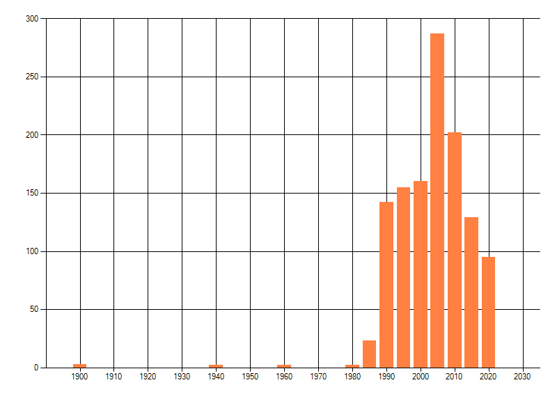 Het aantal atlasblokken (5x5 km) waarin de soort is gemeld binnen een periode van vijf jaar (vanaf 1980) of twintig jaar. Niet gecorrigeerd voor waarnemersinspanning en het aantal doorgegeven waarnemingen kan sterk variëren per periode, dus een trend in verspreiding kan hier niet direct uit worden afgelezen. Het opgegeven jaartal is het eerste jaar van de periode. Bron: gevalideerde waarnemingen uit de NDFF.