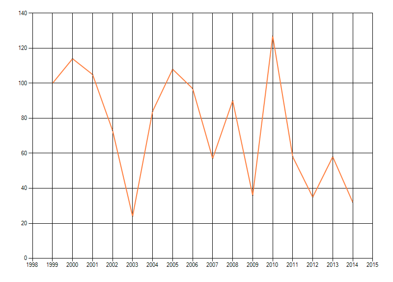 Trend in het geschatte aantal individuen van paddenstoelen in bossen op de hoge zandgronden, weergegeven als indexcijfer (eerste jaar = 100). Bron: