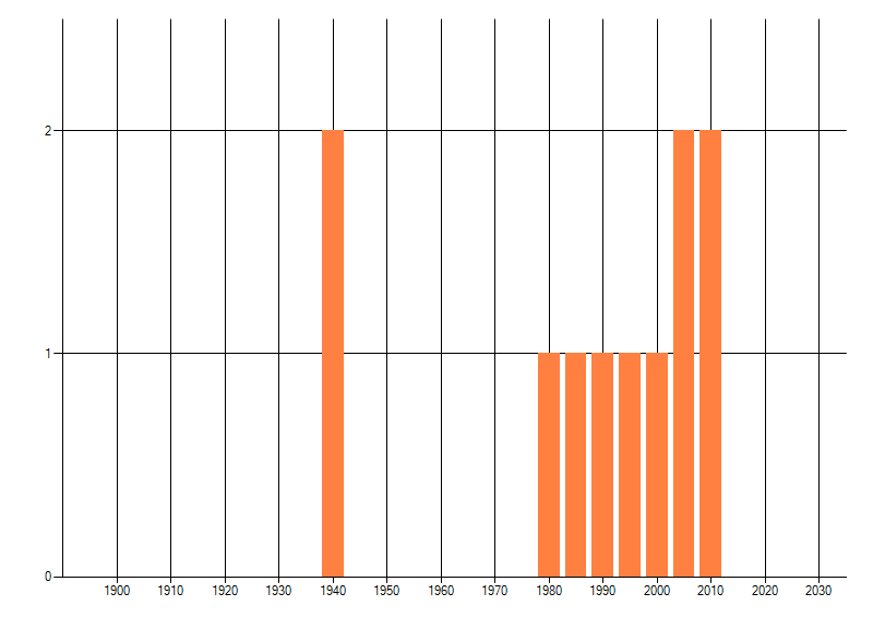 Het aantal atlasblokken (5x5 km) waarin de soort is gemeld binnen een periode van vijf jaar (vanaf 1980) of twintig jaar. Niet gecorrigeerd voor waarnemersinspanning en het aantal doorgegeven waarnemingen kan sterk variëren per periode, dus een trend in verspreiding kan hier niet direct uit worden afgelezen. Het opgegeven jaartal is het eerste jaar van de periode. Bron: gevalideerde waarnemingen uit de NDFF.