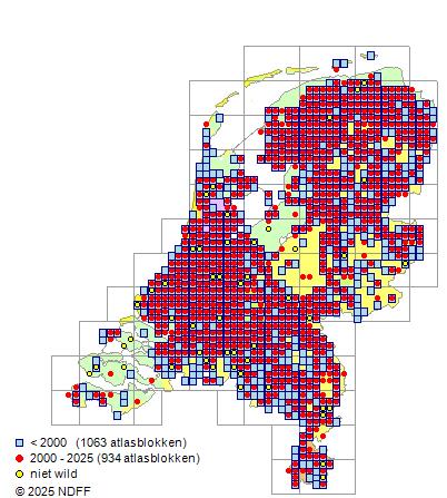 Bron: FLORON - Gemodelleerd op basis van waarnemingen uit de NDFF voor de periode 2000-2021.