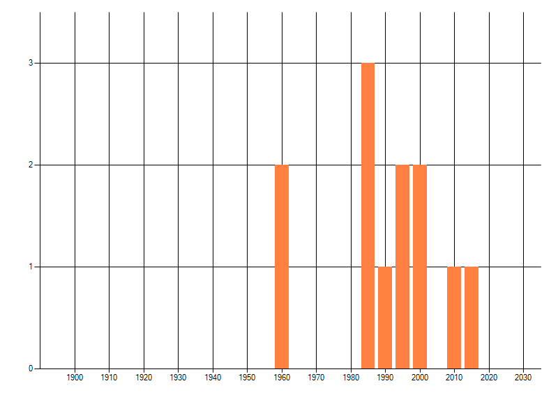 Het aantal atlasblokken (5x5 km) waarin de soort is gemeld binnen een periode van vijf jaar (vanaf 1980) of twintig jaar. Niet gecorrigeerd voor waarnemersinspanning en het aantal doorgegeven waarnemingen kan sterk variëren per periode, dus een trend in verspreiding kan hier niet direct uit worden afgelezen. Het opgegeven jaartal is het eerste jaar van de periode. Bron: gevalideerde waarnemingen uit de NDFF.