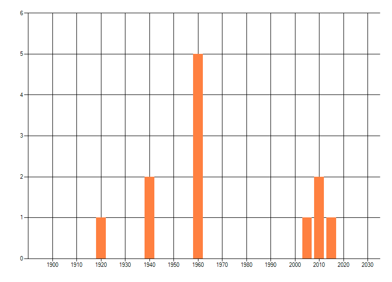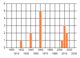 Het aantal atlasblokken (5x5 km) waarin de soort is gemeld binnen een periode van vijf jaar (vanaf 1980) of twintig jaar. Niet gecorrigeerd voor waarnemersinspanning en het aantal doorgegeven waarnemingen kan sterk variëren per periode, dus een trend in verspreiding kan hier niet direct uit worden afgelezen. Het opgegeven jaartal is het eerste jaar van de periode. Bron: gevalideerde waarnemingen uit de NDFF.