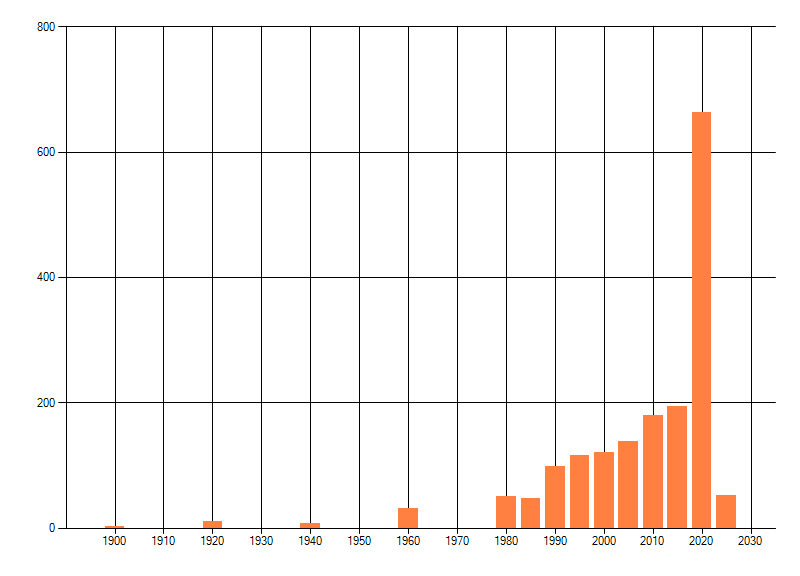 Het aantal atlasblokken (5x5 km) waarin de soort is gemeld binnen een periode van vijf jaar (vanaf 1980) of twintig jaar. Niet gecorrigeerd voor waarnemersinspanning en het aantal doorgegeven waarnemingen kan sterk variëren per periode, dus een trend in verspreiding kan hier niet direct uit worden afgelezen. Het opgegeven jaartal is het eerste jaar van de periode. Bron: gevalideerde waarnemingen uit de NDFF.