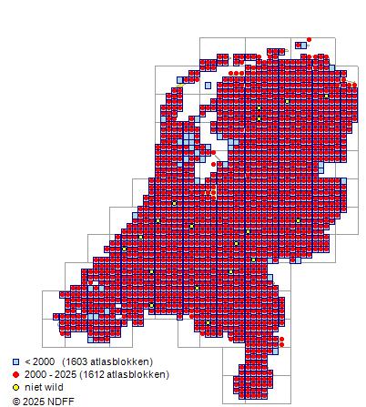 Bron: FLORON - Gemodelleerd op basis van waarnemingen uit de NDFF voor de periode 2000-2021.