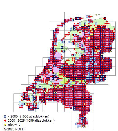 Bron: FLORON - Gemodelleerd op basis van waarnemingen uit de NDFF voor de periode 2000-2021.
