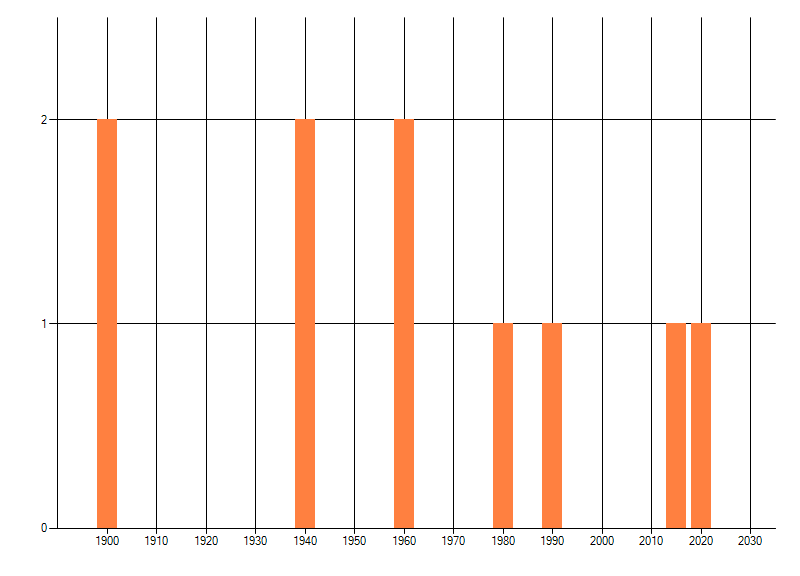 Het aantal atlasblokken (5x5 km) waarin de soort is gemeld binnen een periode van vijf jaar (vanaf 1980) of twintig jaar. Niet gecorrigeerd voor waarnemersinspanning en het aantal doorgegeven waarnemingen kan sterk variëren per periode, dus een trend in verspreiding kan hier niet direct uit worden afgelezen. Het opgegeven jaartal is het eerste jaar van de periode. Bron: gevalideerde waarnemingen uit de NDFF.