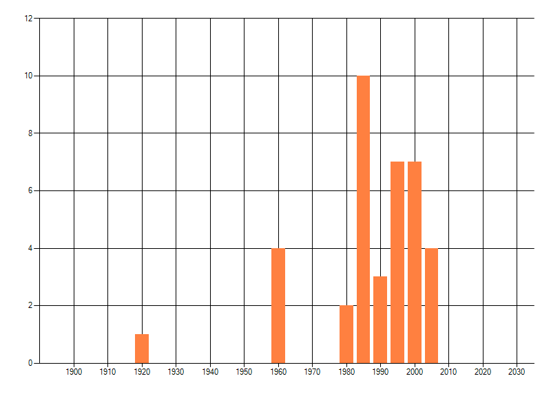 Het aantal atlasblokken (5x5 km) waarin de soort is gemeld binnen een periode van vijf jaar (vanaf 1980) of twintig jaar. Niet gecorrigeerd voor waarnemersinspanning en het aantal doorgegeven waarnemingen kan sterk variëren per periode, dus een trend in verspreiding kan hier niet direct uit worden afgelezen. Het opgegeven jaartal is het eerste jaar van de periode. Bron: gevalideerde waarnemingen uit de NDFF.