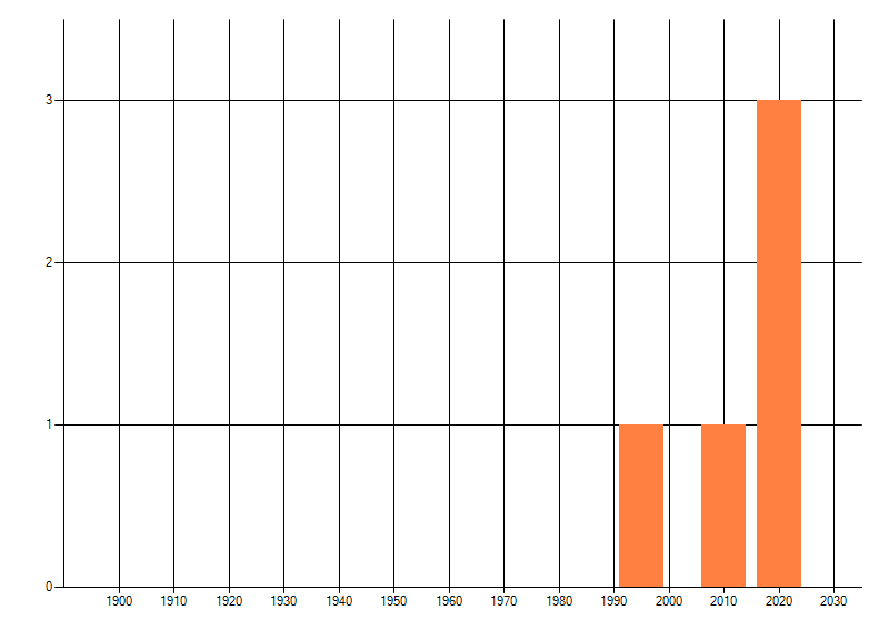 Het aantal atlasblokken (5x5 km) waarin de soort is gemeld binnen een periode van vijf jaar (vanaf 1980) of twintig jaar. Niet gecorrigeerd voor waarnemersinspanning en het aantal doorgegeven waarnemingen kan sterk variëren per periode, dus een trend in verspreiding kan hier niet direct uit worden afgelezen. Het opgegeven jaartal is het eerste jaar van de periode. Bron: gevalideerde waarnemingen uit de NDFF.