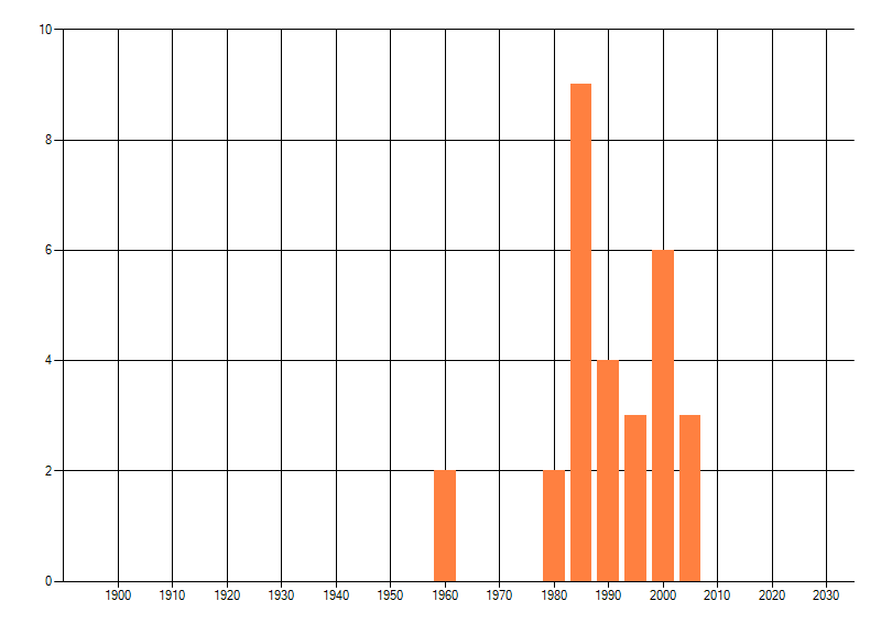 Het aantal atlasblokken (5x5 km) waarin de soort is gemeld binnen een periode van vijf jaar (vanaf 1980) of twintig jaar. Niet gecorrigeerd voor waarnemersinspanning en het aantal doorgegeven waarnemingen kan sterk variëren per periode, dus een trend in verspreiding kan hier niet direct uit worden afgelezen. Het opgegeven jaartal is het eerste jaar van de periode. Bron: gevalideerde waarnemingen uit de NDFF.