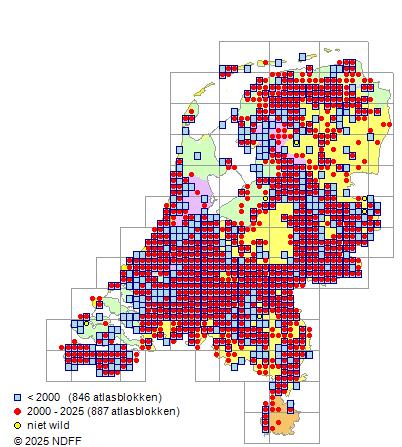 Bron: FLORON - Gemodelleerd op basis van waarnemingen uit de NDFF voor de periode 2000-2021.