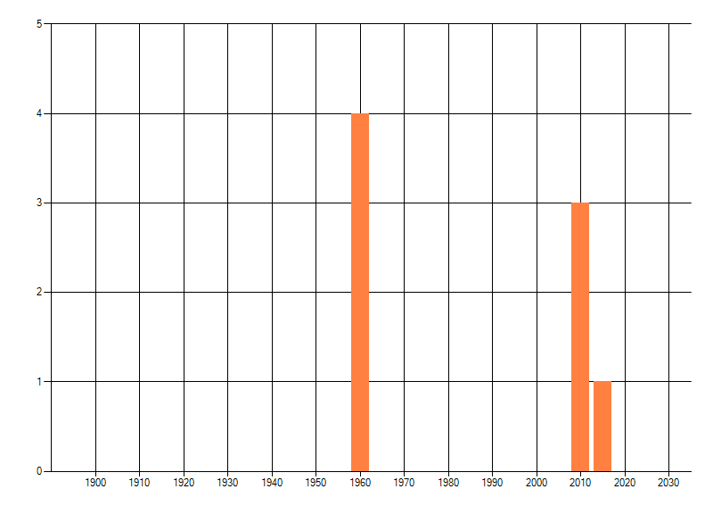 Het aantal atlasblokken (5x5 km) waarin de soort is gemeld binnen een periode van vijf jaar (vanaf 1980) of twintig jaar. Niet gecorrigeerd voor waarnemersinspanning en het aantal doorgegeven waarnemingen kan sterk variëren per periode, dus een trend in verspreiding kan hier niet direct uit worden afgelezen. Het opgegeven jaartal is het eerste jaar van de periode. Bron: gevalideerde waarnemingen uit de NDFF.
