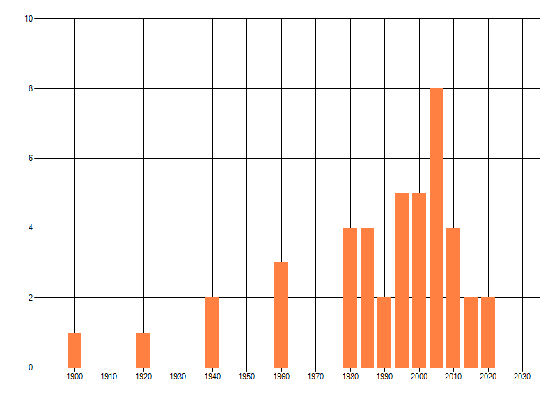 Het aantal atlasblokken (5x5 km) waarin de soort is gemeld binnen een periode van vijf jaar (vanaf 1980) of twintig jaar. Niet gecorrigeerd voor waarnemersinspanning en het aantal doorgegeven waarnemingen kan sterk variëren per periode, dus een trend in verspreiding kan hier niet direct uit worden afgelezen. Het opgegeven jaartal is het eerste jaar van de periode. Bron: gevalideerde waarnemingen uit de NDFF.