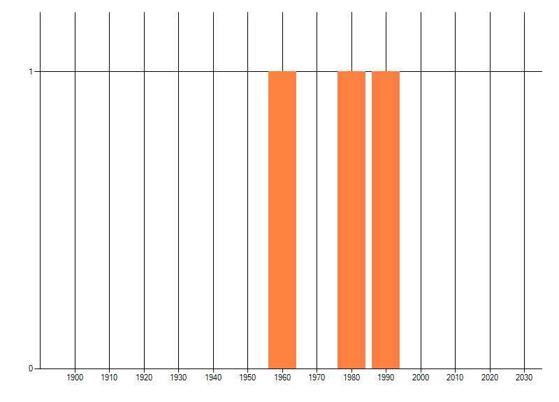 Het aantal atlasblokken (5x5 km) waarin de soort is gemeld binnen een periode van vijf jaar (vanaf 1980) of twintig jaar. Niet gecorrigeerd voor waarnemersinspanning en het aantal doorgegeven waarnemingen kan sterk variëren per periode, dus een trend in verspreiding kan hier niet direct uit worden afgelezen. Het opgegeven jaartal is het eerste jaar van de periode. Bron: gevalideerde waarnemingen uit de NDFF.