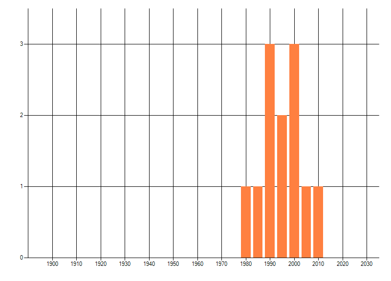 Het aantal atlasblokken (5x5 km) waarin de soort is gemeld binnen een periode van vijf jaar (vanaf 1980) of twintig jaar. Niet gecorrigeerd voor waarnemersinspanning en het aantal doorgegeven waarnemingen kan sterk variëren per periode, dus een trend in verspreiding kan hier niet direct uit worden afgelezen. Het opgegeven jaartal is het eerste jaar van de periode. Bron: gevalideerde waarnemingen uit de NDFF.