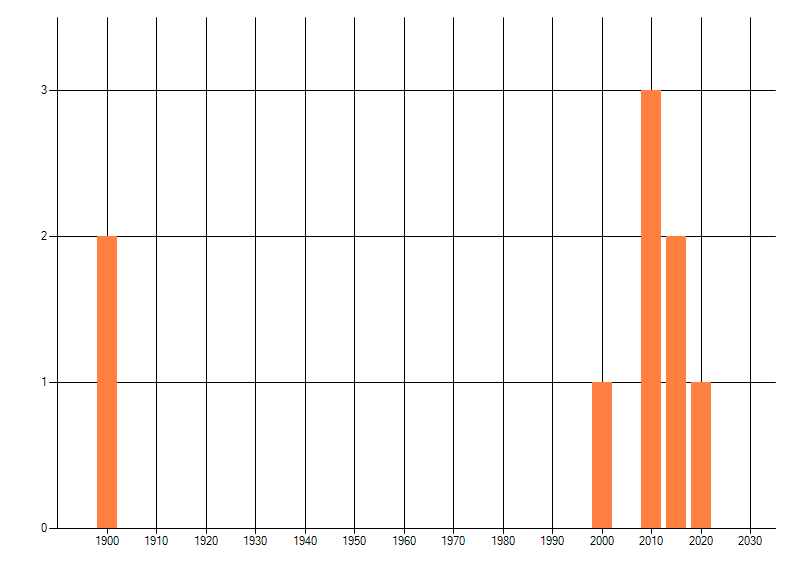 Het aantal atlasblokken (5x5 km) waarin de soort is gemeld binnen een periode van vijf jaar (vanaf 1980) of twintig jaar. Niet gecorrigeerd voor waarnemersinspanning en het aantal doorgegeven waarnemingen kan sterk variëren per periode, dus een trend in verspreiding kan hier niet direct uit worden afgelezen. Het opgegeven jaartal is het eerste jaar van de periode. Bron: gevalideerde waarnemingen uit de NDFF.