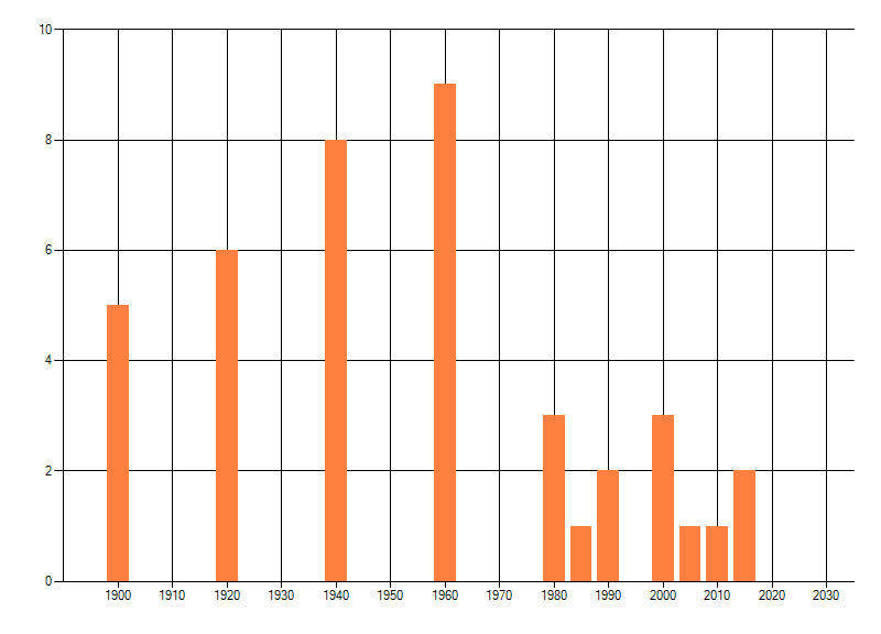 Het aantal atlasblokken (5x5 km) waarin de soort is gemeld binnen een periode van vijf jaar (vanaf 1980) of twintig jaar. Niet gecorrigeerd voor waarnemersinspanning en het aantal doorgegeven waarnemingen kan sterk variëren per periode, dus een trend in verspreiding kan hier niet direct uit worden afgelezen. Het opgegeven jaartal is het eerste jaar van de periode. Bron: gevalideerde waarnemingen uit de NDFF.