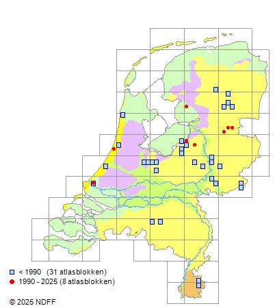Vroeger vrij zeld., voornamelijk in G, S en R, zeld. in D, zeer zeld. in K en Z. Sterk afgenomen en sinds 1986 nog slechts van twee vindplaatsen bekend. Oorzaak van achteruitgang onbekend, mogelijk vermesting.