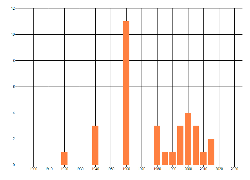 Het aantal atlasblokken (5x5 km) waarin de soort is gemeld binnen een periode van vijf jaar (vanaf 1980) of twintig jaar. Niet gecorrigeerd voor waarnemersinspanning en het aantal doorgegeven waarnemingen kan sterk variëren per periode, dus een trend in verspreiding kan hier niet direct uit worden afgelezen. Het opgegeven jaartal is het eerste jaar van de periode. Bron: gevalideerde waarnemingen uit de NDFF.