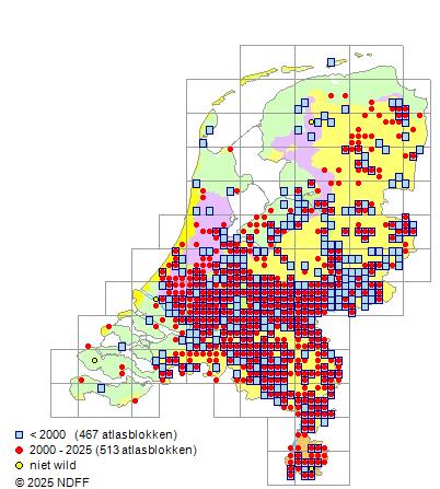Bron: FLORON - Gemodelleerd op basis van waarnemingen uit de NDFF voor de periode 2000-2021.