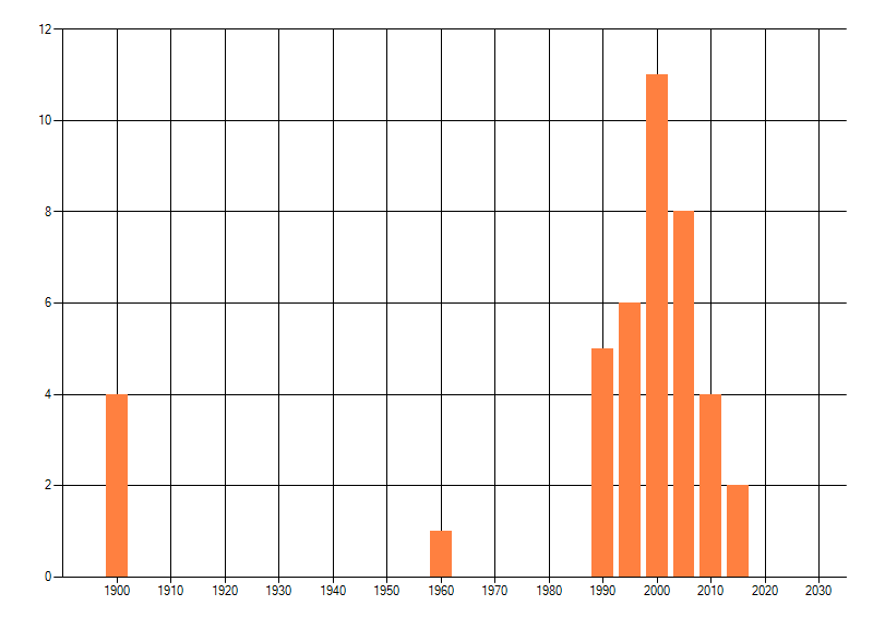 Het aantal atlasblokken (5x5 km) waarin de soort is gemeld binnen een periode van vijf jaar (vanaf 1980) of twintig jaar. Niet gecorrigeerd voor waarnemersinspanning en het aantal doorgegeven waarnemingen kan sterk variëren per periode, dus een trend in verspreiding kan hier niet direct uit worden afgelezen. Het opgegeven jaartal is het eerste jaar van de periode. Bron: gevalideerde waarnemingen uit de NDFF.