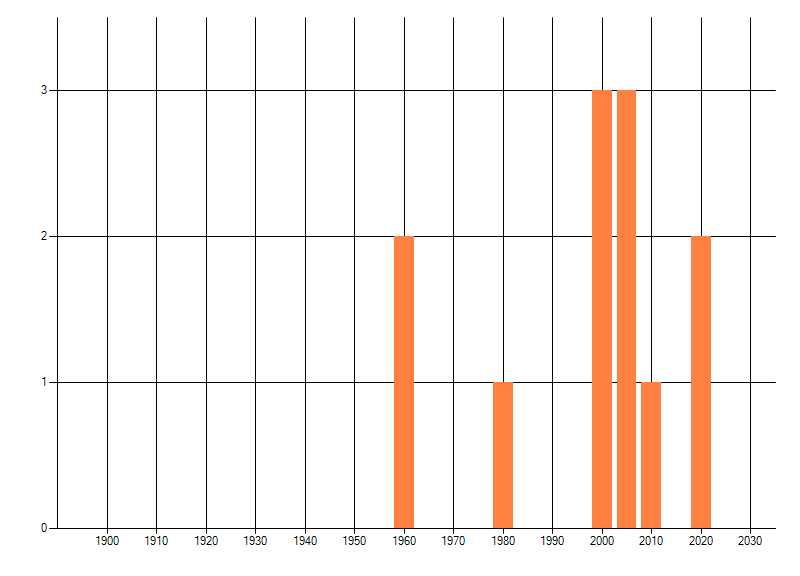 Het aantal atlasblokken (5x5 km) waarin de soort is gemeld binnen een periode van vijf jaar (vanaf 1980) of twintig jaar. Niet gecorrigeerd voor waarnemersinspanning en het aantal doorgegeven waarnemingen kan sterk variëren per periode, dus een trend in verspreiding kan hier niet direct uit worden afgelezen. Het opgegeven jaartal is het eerste jaar van de periode. Bron: gevalideerde waarnemingen uit de NDFF.