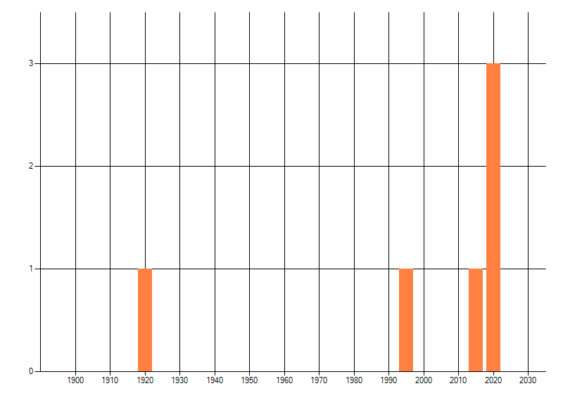 Het aantal atlasblokken (5x5 km) waarin de soort is gemeld binnen een periode van vijf jaar (vanaf 1980) of twintig jaar. Niet gecorrigeerd voor waarnemersinspanning en het aantal doorgegeven waarnemingen kan sterk variëren per periode, dus een trend in verspreiding kan hier niet direct uit worden afgelezen. Het opgegeven jaartal is het eerste jaar van de periode. Bron: gevalideerde waarnemingen uit de NDFF.