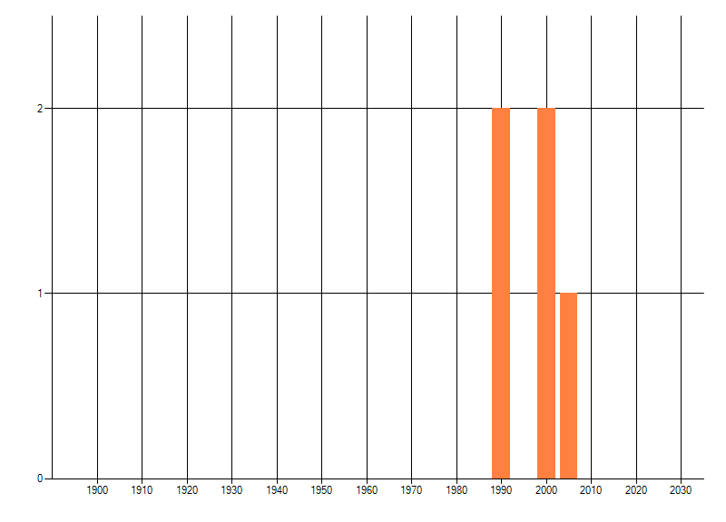 Het aantal atlasblokken (5x5 km) waarin de soort is gemeld binnen een periode van vijf jaar (vanaf 1980) of twintig jaar. Niet gecorrigeerd voor waarnemersinspanning en het aantal doorgegeven waarnemingen kan sterk variëren per periode, dus een trend in verspreiding kan hier niet direct uit worden afgelezen. Het opgegeven jaartal is het eerste jaar van de periode. Bron: gevalideerde waarnemingen uit de NDFF.