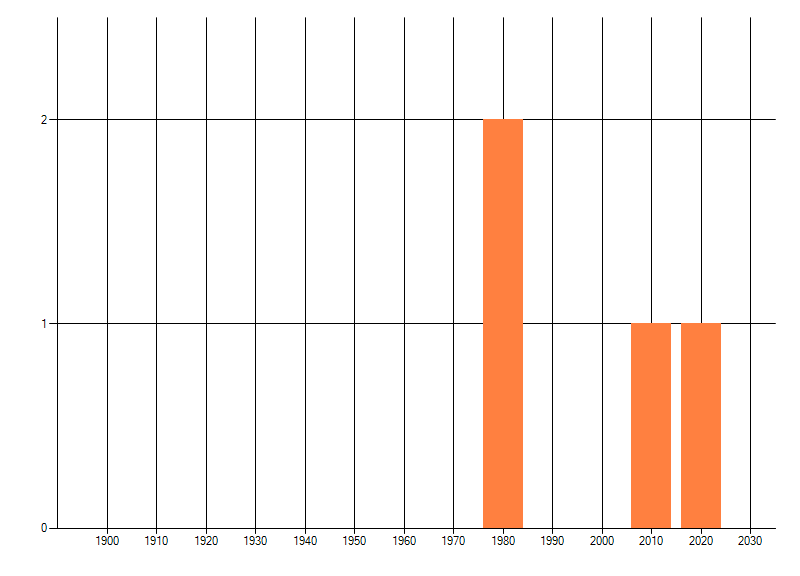 Het aantal atlasblokken (5x5 km) waarin de soort is gemeld binnen een periode van vijf jaar (vanaf 1980) of twintig jaar. Niet gecorrigeerd voor waarnemersinspanning en het aantal doorgegeven waarnemingen kan sterk variëren per periode, dus een trend in verspreiding kan hier niet direct uit worden afgelezen. Het opgegeven jaartal is het eerste jaar van de periode. Bron: gevalideerde waarnemingen uit de NDFF.