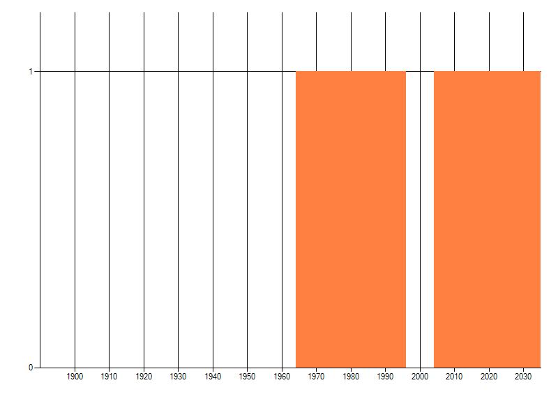Het aantal atlasblokken (5x5 km) waarin de soort is gemeld binnen een periode van vijf jaar (vanaf 1980) of twintig jaar. Niet gecorrigeerd voor waarnemersinspanning en het aantal doorgegeven waarnemingen kan sterk variëren per periode, dus een trend in verspreiding kan hier niet direct uit worden afgelezen. Het opgegeven jaartal is het eerste jaar van de periode. Bron: gevalideerde waarnemingen uit de NDFF.