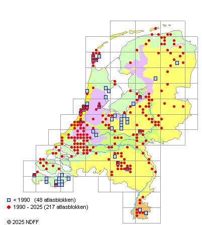 Het opgegeven jaartal is het eerste jaar van de periode. Bron: gevalideerde waarnemingen uit de NDFF.