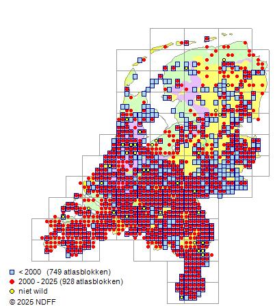 Bron: FLORON - Gemodelleerd op basis van waarnemingen uit de NDFF voor de periode 2000-2021.