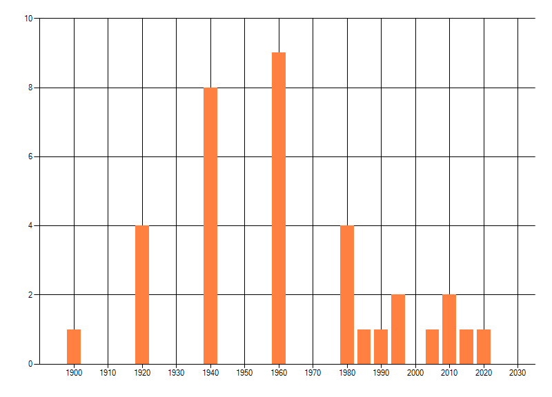 Het aantal atlasblokken (5x5 km) waarin de soort is gemeld binnen een periode van vijf jaar (vanaf 1980) of twintig jaar. Niet gecorrigeerd voor waarnemersinspanning en het aantal doorgegeven waarnemingen kan sterk variëren per periode, dus een trend in verspreiding kan hier niet direct uit worden afgelezen. Het opgegeven jaartal is het eerste jaar van de periode. Bron: gevalideerde waarnemingen uit de NDFF.
