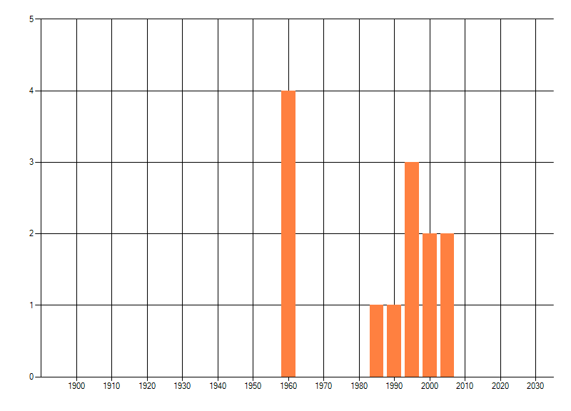 Het aantal atlasblokken (5x5 km) waarin de soort is gemeld binnen een periode van vijf jaar (vanaf 1980) of twintig jaar. Niet gecorrigeerd voor waarnemersinspanning en het aantal doorgegeven waarnemingen kan sterk variëren per periode, dus een trend in verspreiding kan hier niet direct uit worden afgelezen. Het opgegeven jaartal is het eerste jaar van de periode. Bron: gevalideerde waarnemingen uit de NDFF.