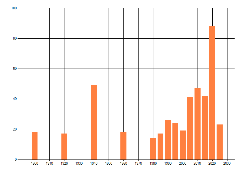 dus een trend in verspreiding kan hier niet direct uit worden afgelezen. Het opgegeven jaartal is het eerste jaar van de