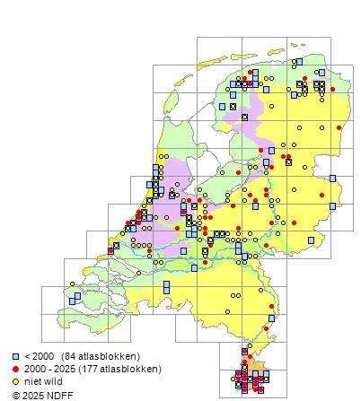 CC BY-NC-SA 3.0 NLVerspreidingNederlandZeldzaam in Zuid-Limburg. Als stinsenplant in de Zuid-Hollandse duinen, het Midden-Nederlandse rivierengebied, Groningen en Fryslân.