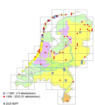 Zeld., voornamelijk in W (vrij zeld.), elders zeer zeld. in P. Achteruitgaand. Kaart in Nauta & Vellinga, Atlas. 1995.
