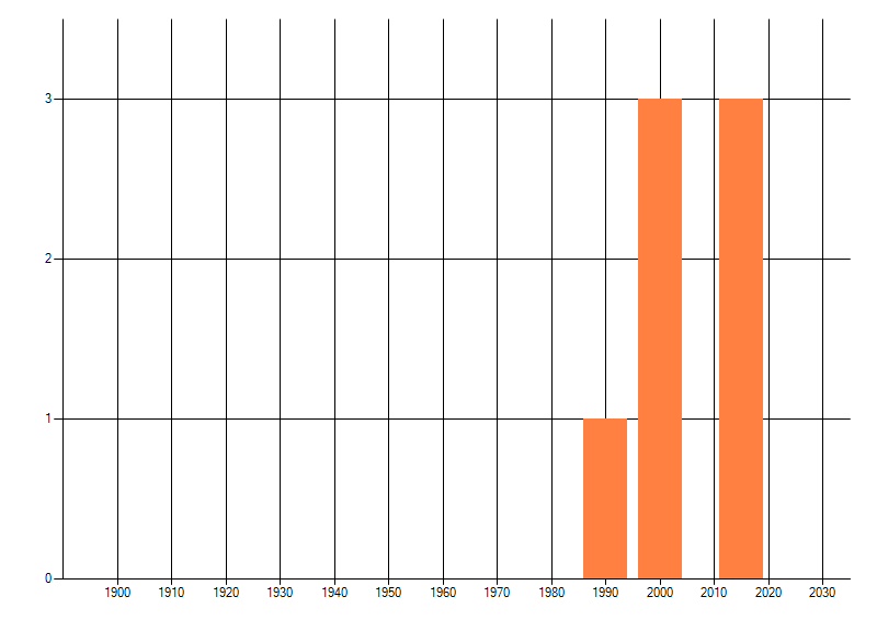 Het aantal atlasblokken (5x5 km) waarin de soort is gemeld binnen een periode van vijf jaar (vanaf 1980) of twintig jaar. Niet gecorrigeerd voor waarnemersinspanning en het aantal doorgegeven waarnemingen kan sterk variëren per periode, dus een trend in verspreiding kan hier niet direct uit worden afgelezen. Het opgegeven jaartal is het eerste jaar van de periode. Bron: gevalideerde waarnemingen uit de NDFF.