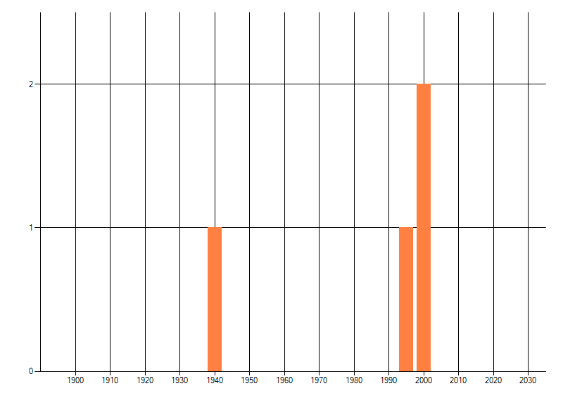 Het aantal atlasblokken (5x5 km) waarin de soort is gemeld binnen een periode van vijf jaar (vanaf 1980) of twintig jaar. Niet gecorrigeerd voor waarnemersinspanning en het aantal doorgegeven waarnemingen kan sterk variëren per periode, dus een trend in verspreiding kan hier niet direct uit worden afgelezen. Het opgegeven jaartal is het eerste jaar van de periode. Bron: gevalideerde waarnemingen uit de NDFF.