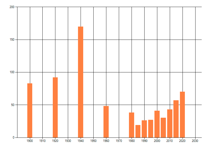 dus een trend in verspreiding kan hier niet direct uit worden afgelezen. Het opgegeven jaartal is het eerste jaar van de