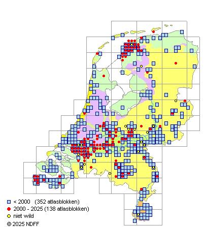 CC BY-NC-SA 3.0 NLVerspreidingNederlandZeldzaam in zeekleigebieden en in het uiterste oosten en zuidoosten van het land en het aansluitende rivierengebied. Elders zeer zeldzaam.