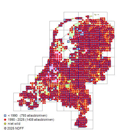 Bron: FLORON - Gemodelleerd op basis van waarnemingen uit de NDFF voor de periode 2000-2021.