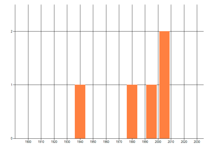Het aantal atlasblokken (5x5 km) waarin de soort is gemeld binnen een periode van vijf jaar (vanaf 1980) of twintig jaar. Niet gecorrigeerd voor waarnemersinspanning en het aantal doorgegeven waarnemingen kan sterk variëren per periode, dus een trend in verspreiding kan hier niet direct uit worden afgelezen. Het opgegeven jaartal is het eerste jaar van de periode. Bron: gevalideerde waarnemingen uit de NDFF.