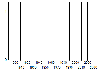 Het aantal atlasblokken (5x5 km) waarin de soort is gemeld binnen een periode van vijf jaar (vanaf 1980) of twintig jaar. Niet gecorrigeerd voor waarnemersinspanning en het aantal doorgegeven waarnemingen kan sterk variëren per periode, dus een trend in verspreiding kan hier niet direct uit worden afgelezen. Het opgegeven jaartal is het eerste jaar van de periode. Bron: gevalideerde waarnemingen uit de NDFF.