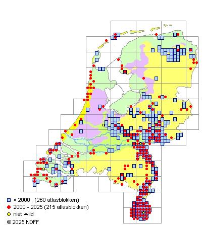 CC BY-NC-SA 3.0 NLVerspreidingNederlandZeldzaam in Zuid-Limburg, in het Deltagebied en in het rivierengebied. Elders zeer zeldzaam.