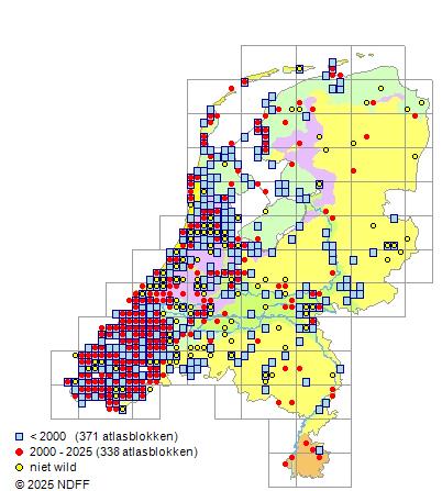 CC BY-NC-SA 3.0 NLVerspreidingNederlandVrij zeldzaam in Zeeland, zeldzaam in het noordelijk zeekleigebied en langs de Friese IJsselmeerkust en zeer zeldzaam in het Waddengebied.