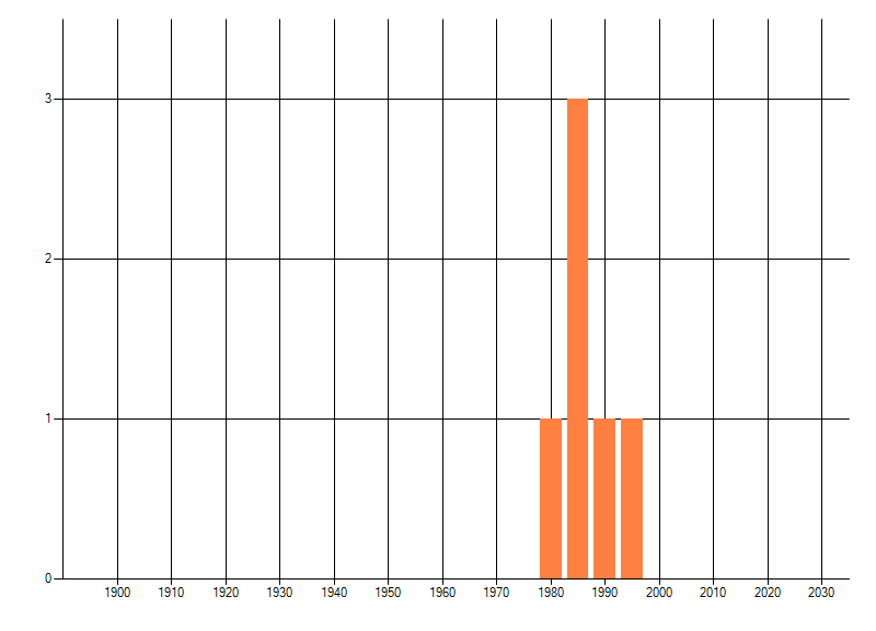 Het aantal atlasblokken (5x5 km) waarin de soort is gemeld binnen een periode van vijf jaar (vanaf 1980) of twintig jaar. Niet gecorrigeerd voor waarnemersinspanning en het aantal doorgegeven waarnemingen kan sterk variëren per periode, dus een trend in verspreiding kan hier niet direct uit worden afgelezen. Het opgegeven jaartal is het eerste jaar van de periode. Bron: gevalideerde waarnemingen uit de NDFF.