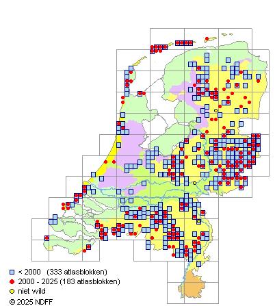Bron: FLORON - Gemodelleerd op basis van waarnemingen uit de NDFF voor de periode 2000-2021.