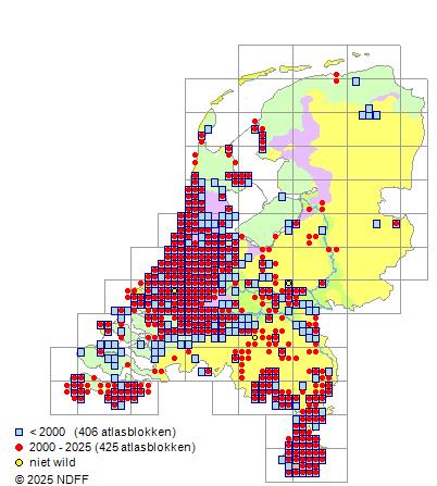 Bron: FLORON - Gemodelleerd op basis van waarnemingen uit de NDFF voor de periode 2000-2021.